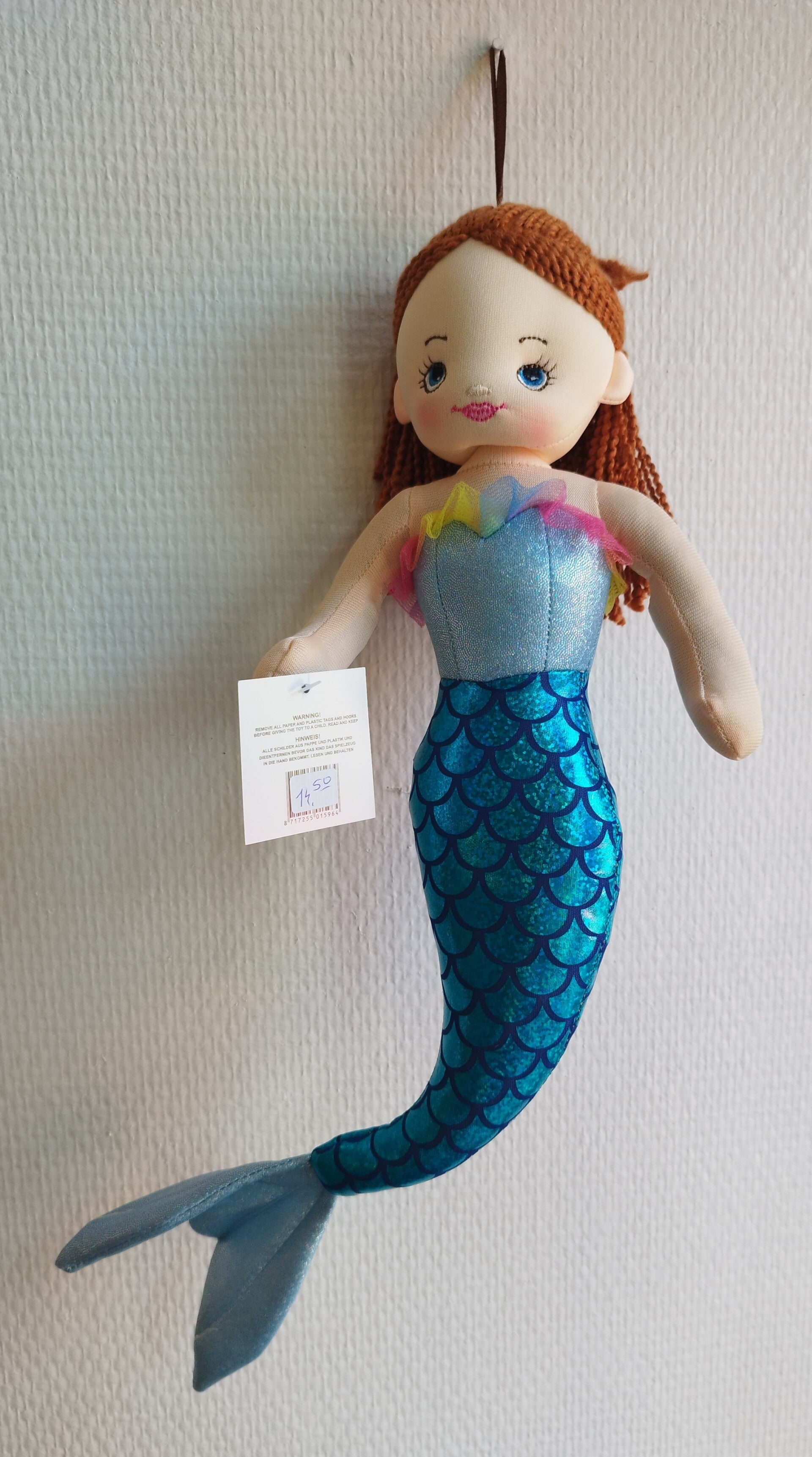 Deze mooie zeemeermin knuffel is 40 cm.