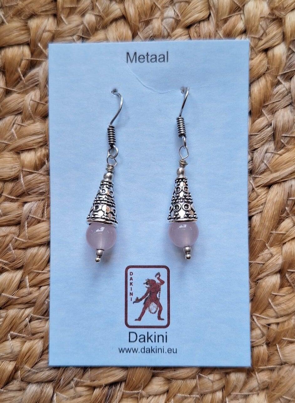 Oorbellen van metaal met roze kraal.